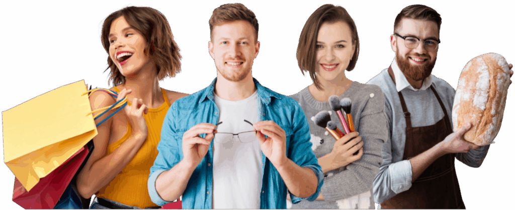 🛍️ boutiques, 🍞 artisans, 💇♀️ services, 🍽️ restaurateurs, 🚗 professionnels…